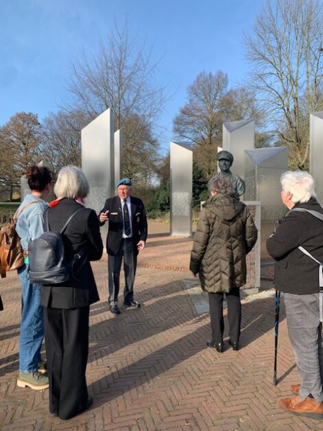 Na een presentatie in het paviljoen van het Nationaal Indiëmonument 1945-1962 bezochten we buiten o.l.v. een gids en bij een heerlijk zonnetje de vele herdenkingsmonumenten. Dhr. Aendekerk wist er interessante dingen over te vertellen.